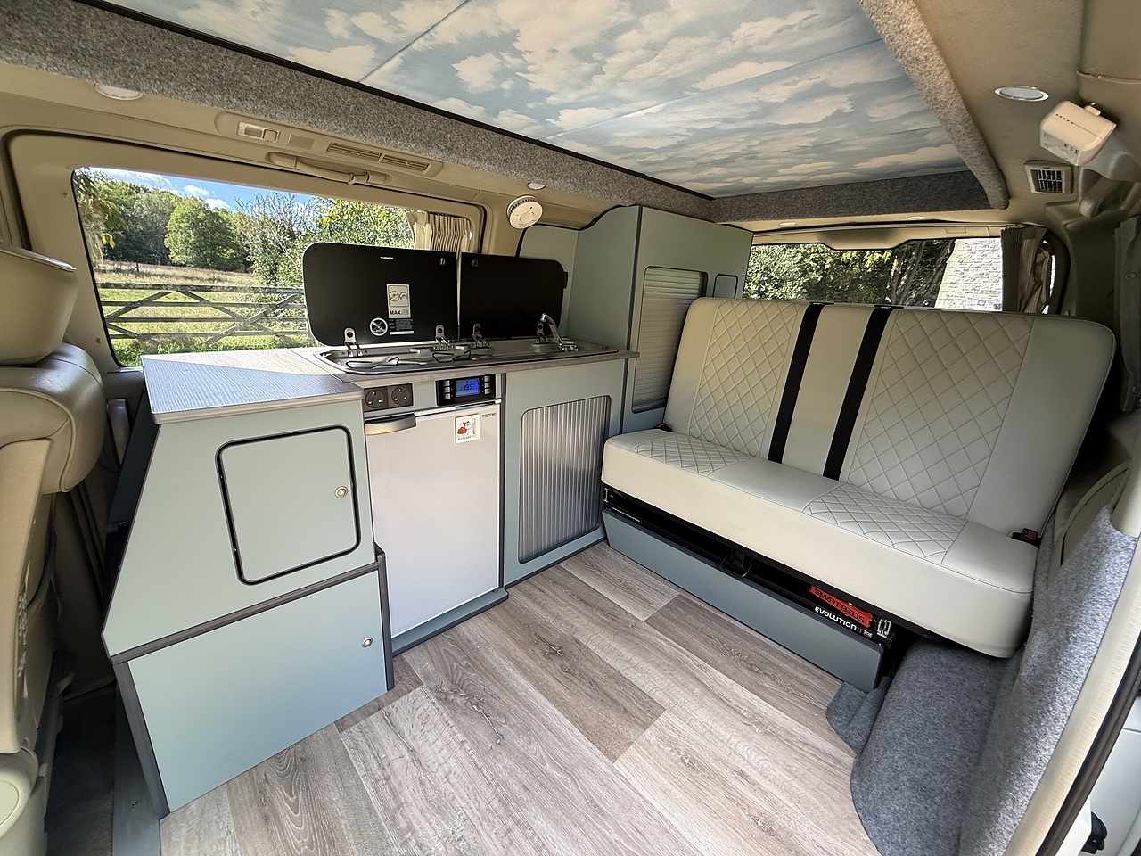 EXCELLENT CONDITION WITH SERVICE HISTORY - NEW MOT AND JUST SERVICED - POP TOP CAMPER with ROCK & ROLL BED - FULL BEIGE LEATHER THROUGHOUT - VANGO DRIVEAWAY AIR AWNING - BUILT IN GAS TANK - ELECTRIC HOOK UP - KITCHEN AREA with TWIN GAS HOB & SINK, FRIDGE/FREEZER & PLENTY OF STORAGE